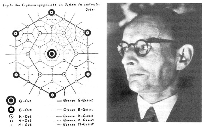 Az amerikai „kvantitatív forradalom” német sztárja, Walter Christaller dolgozta ki az ún. központi helyek elméletét, amely a földrajztudományban, városkutatásban, térgazdaságtanban és regionális kutatásokban a mai napig a tankönyvi kánon és diszciplináris öntudat része. Célja nem kevesebb volt, mint az egyes hierarchiaszinteken „optimális” lakosságszámú településekből álló, „racionális” településhálózat és közigazgatási rendszer megtervezése. Az eredetileg szocialista Christaller 1940-től Konrad Meyer megbízásából a nácik „Keleti tervén” (Generalplan Ost), elsősorban a megszállt Lengyelország gyarmatosításán dolgozott, amelynek tudományos kidolgozására és legitimálására a központi helyek elmélete szolgált.
