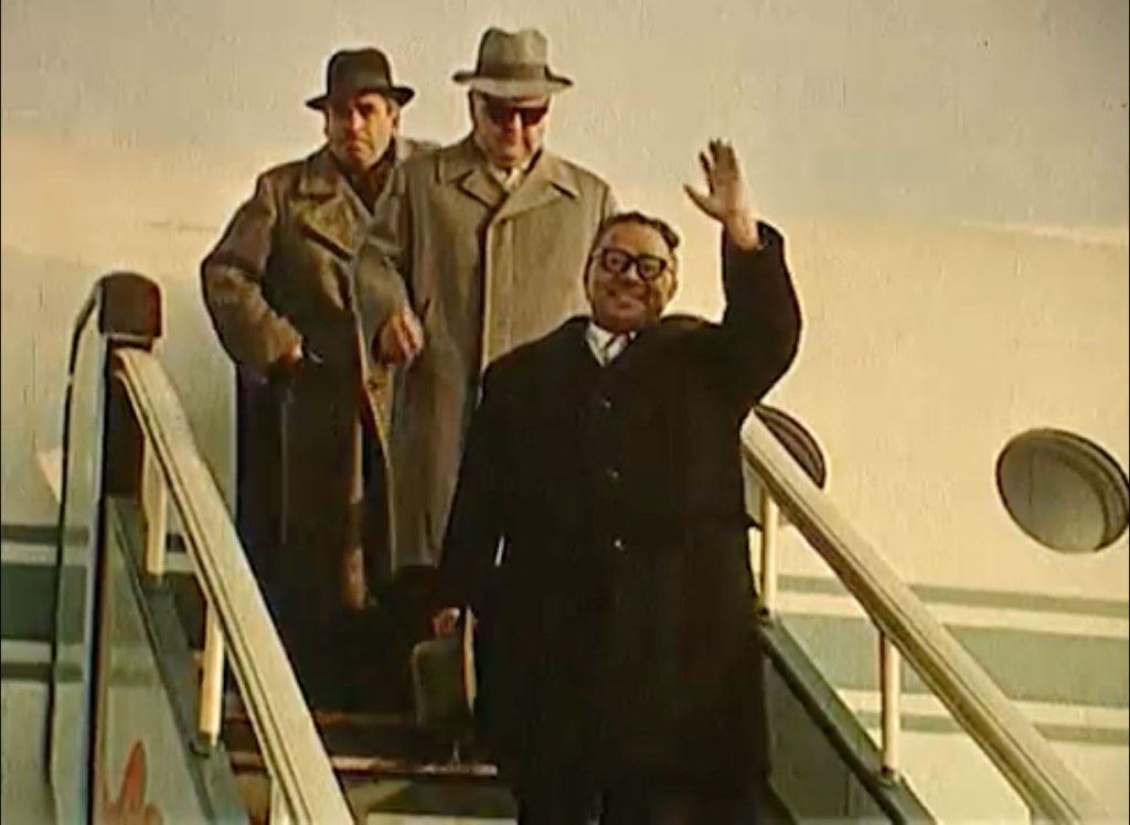 The Hungarian government delegation to West Africa led by Gyula Kállay returns back to Budapest, in the back is József Bognár. Film still from “Four Weeks in Africa” (Négy hét Afrikában) government-commissioned documentary movie about the trip (dir. István Knoll, 1963).